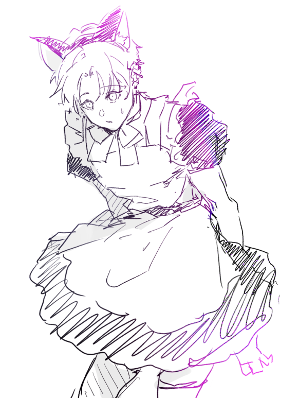 황구 뭐지? 왜...잘 그리지?(근본적인 의문을 가짐) 하습 황구가 그린 이도운...자꾸 내가 내 자캐에 대고 열광을 하게 만든다....대충 그린 그먼씹이도운 러프를 주고 이런 갓낙서를 얻는 겁니다..빠른 시간에 슥슥 그렸는데도 완전 최고다 심지어 옷 디자인도 함 바꿨는데두 바로 반영하는 황구 오졌죠?? 그러나 제일 환장할 것 같은 포인트..나에게 고양이메이드 이도운을 납득시킴..황구가 그리니까 걍 머...음 그럴 수도 있지하고 생각하게 됨 이도운에게 뭔가 모종의 사정이 있었겠죠....왠지..쫌..어리버리한 느낌 나기도 해서 초보 메이드 느낌이 나고요...(자캐를 가지고 그먼씹 뇌절발언함) 아직 메이드 일한지 얼마 안되어서 오므라이스에 찌그러진 하트 그릴 거 같음 그치만 오므라이스 자체는 잘 만드는 메이드 되기...왠지..그려놓은거 보니까 손님이 당황스러운 요구해서 쫌 빤히 보는 것 같고..그렇네요^^;...짓시에서도 말했지만 좋은 그림은 보기만 해도 이런저런 이야기가 나오는 법인데 자꾸만 이런저런 상황들이 떠올라서 걍..어이가 없음 황구의 존잘력에..머...제가 이도운가지고 어디까지 뇌절해야..그만 잘 그리실 건가요..? 하..이 실력으로..메이드 제갈림도 그려주었으면..나만의 고양이 남친 제갈림 안 그려주려나 ㅇ_ㅇ